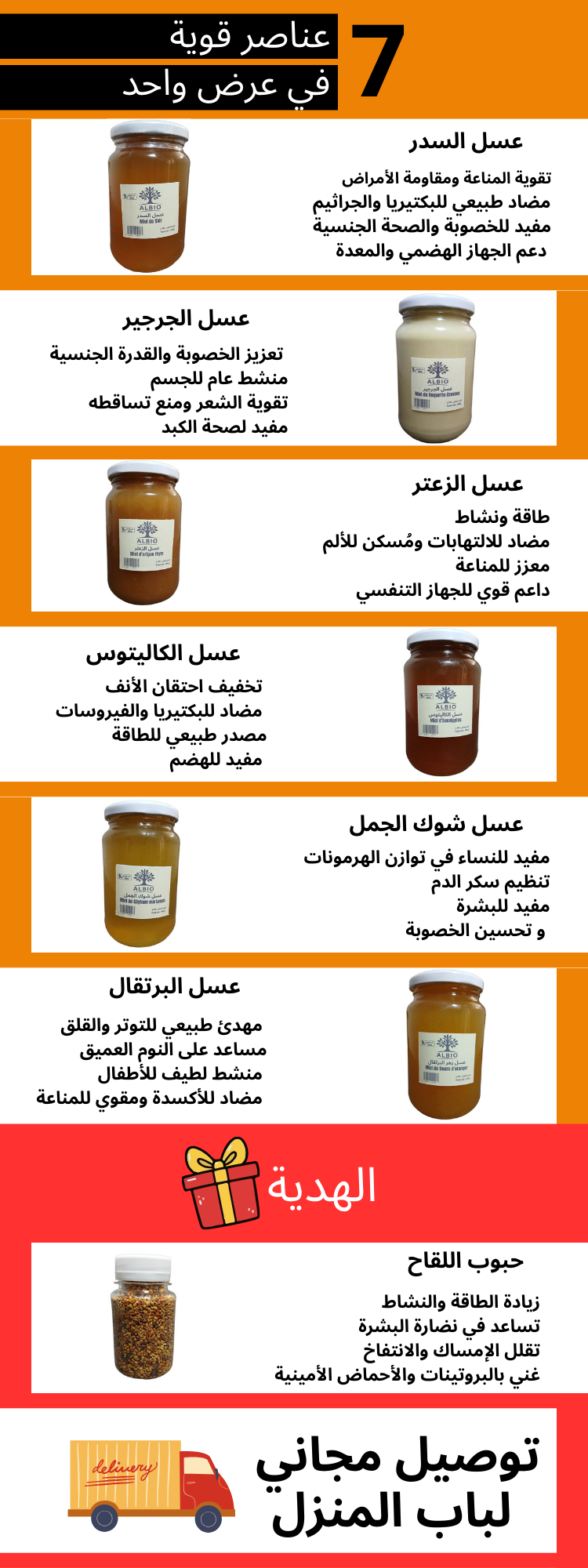 اشتري 3 كغ من العسل الحر + هدية (حبوب اللقاح ) + توصيل مجاني لباب المنزل